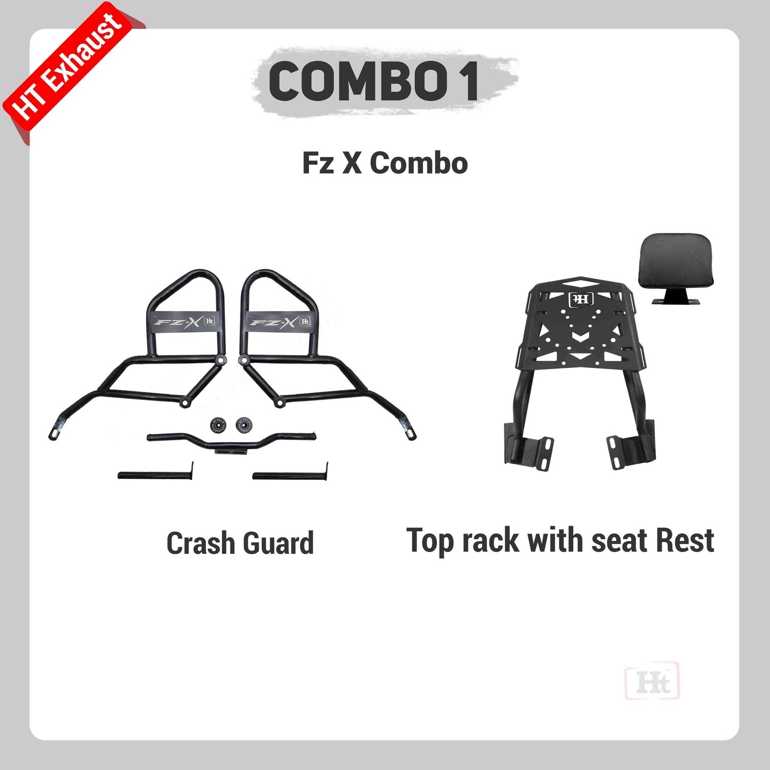 COMBO 1 FZ X CRASH GUARD + TOPRACK WITH BACKREST – HT EXHAUST
