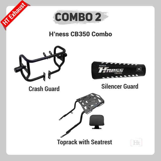 COMBO 2 HNESS Crash Guard + Silencer Guard + Top Rack with Seatrest - HT EXHAUST
