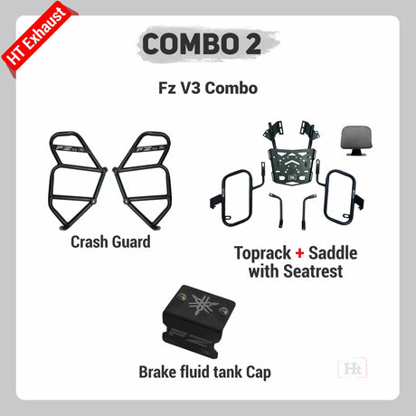 COMBO 4 FZ X Crash Guard + Top Rack + Saddle Stay + Seat Rest – HT EXHAUST