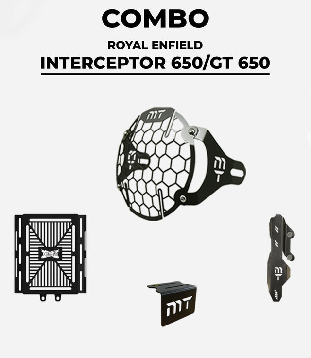 This set of 4 Interceptor/GT 650 combo can protect your motorcycle Headlight Grill, Radiator Guard, Disk Oil Guard & Rear Master Cylinder Guard.