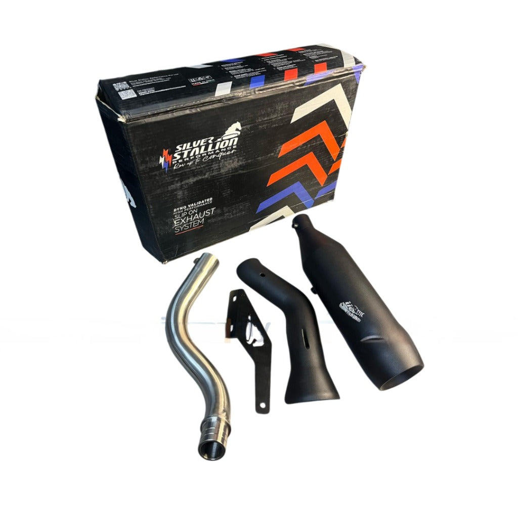RE HIMALAYAN 450 - GUERRILLA 450 | SILVER STALLION CROSS COUNTRY | DYNO High Performance Exhaust System | BLACK - LIFE TIME WARRANTY is backordered and will ship as soon as it is back in stock.