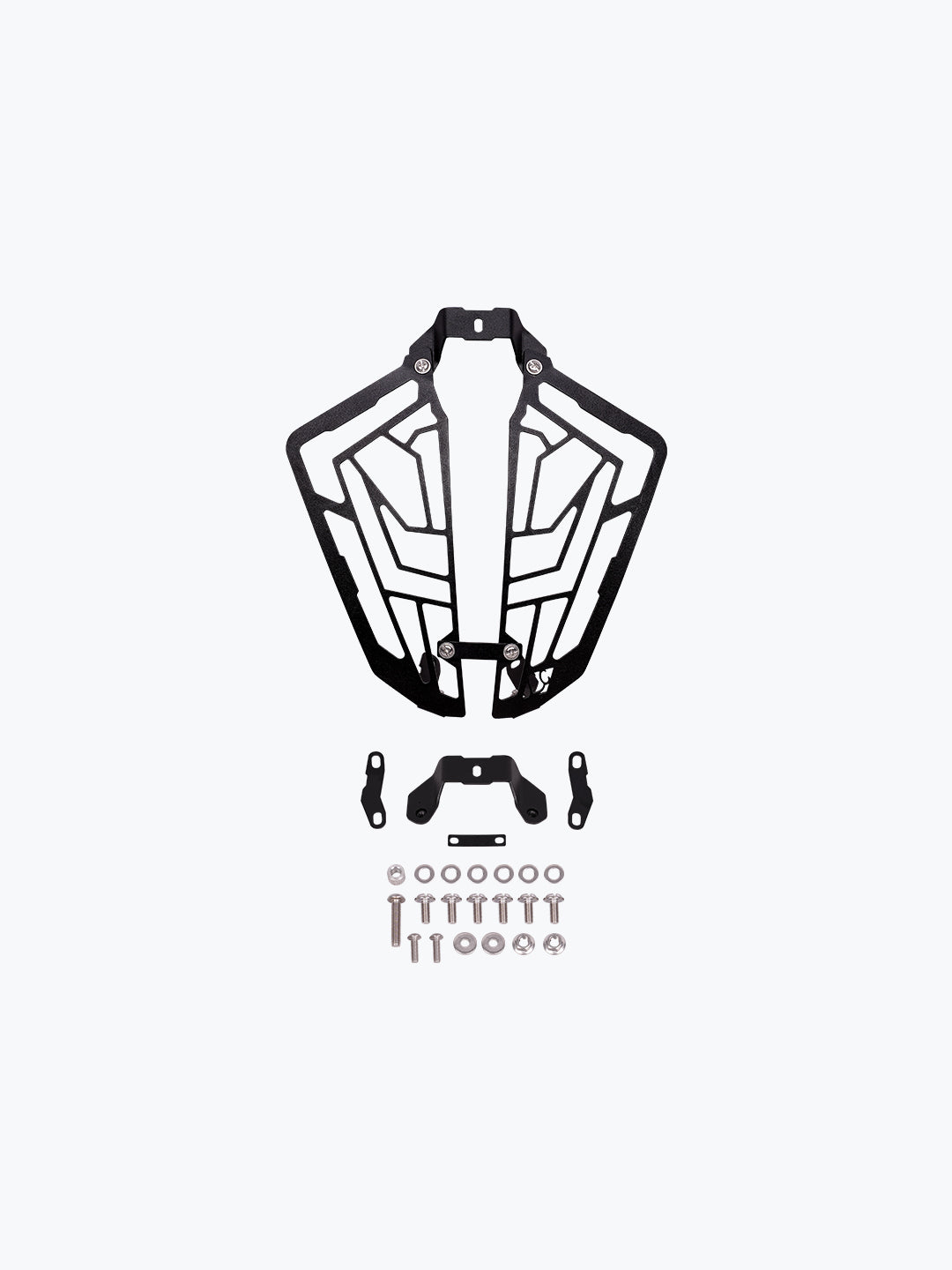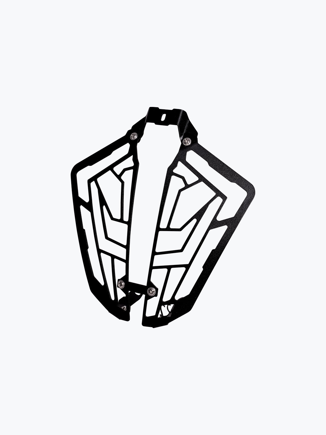Protect your KTM 890 Adventure headlamp with the Mild Steel Headlight Grill Black available at Bandidos pitstop This grill is designed to shield your headlight from debris, rocks, and other potential hazards encountered during rides. Constructed from high-quality mild steel it offers durability and strength without compromising the headlight's illumination. The black powder-coated finish not only adds a rugged aesthetic to your motorcycle but also provides resistance against corrosion. Easy to install, this headlight grill is an essential accessory for riders seeking both protection and style.