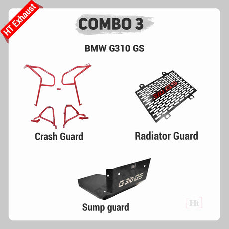 COMBO 3 BMW GS310 Crash Guard + Radiator Guard + Sump Guard – HT EXHAUST