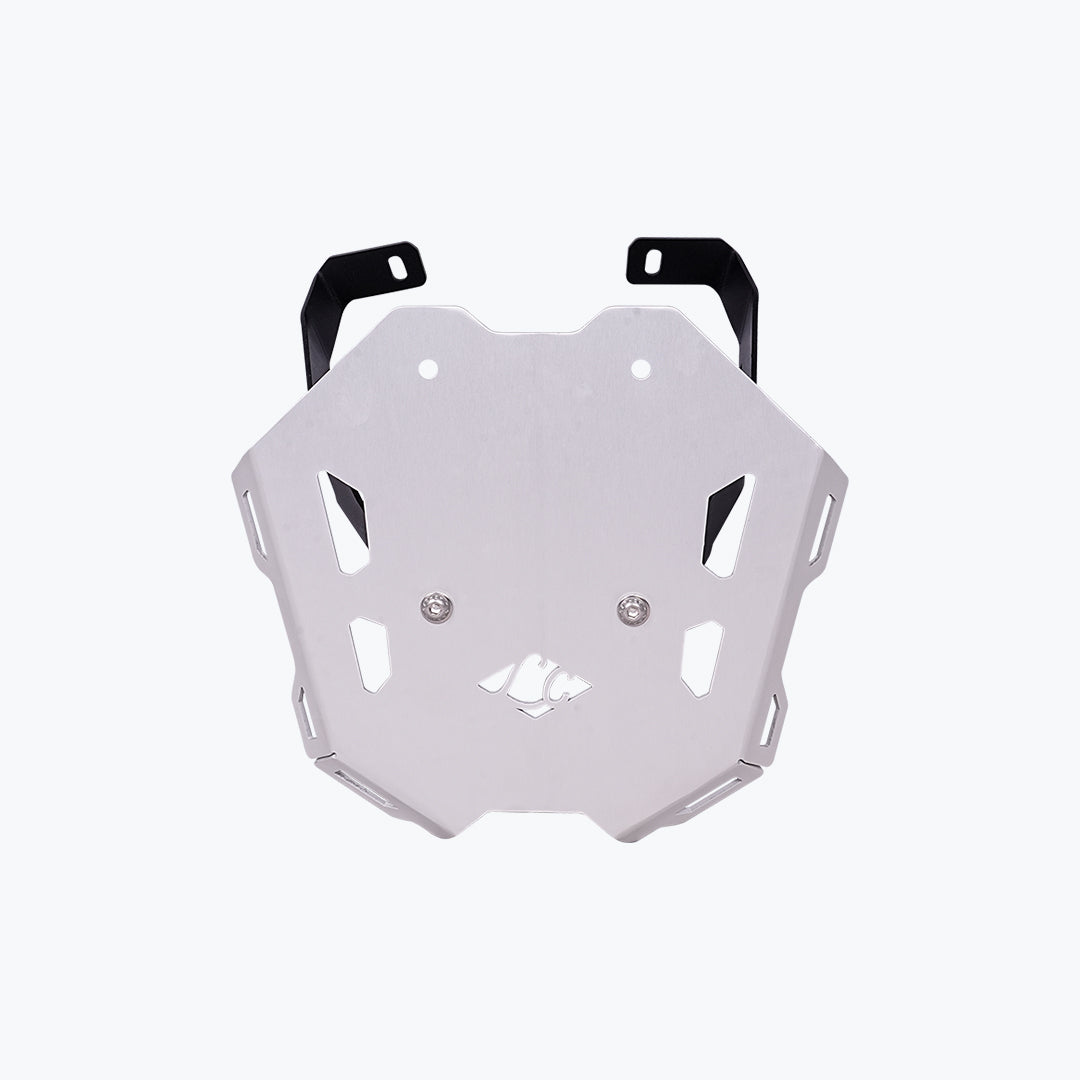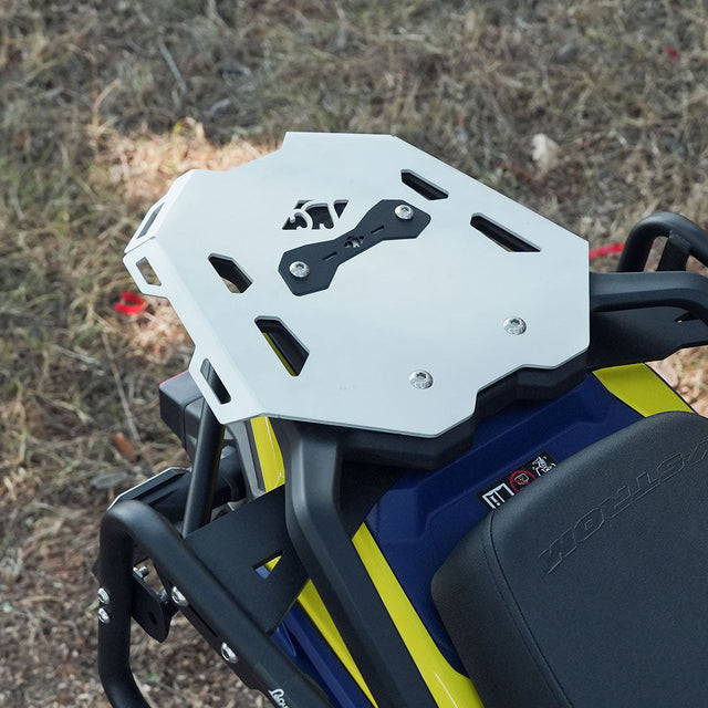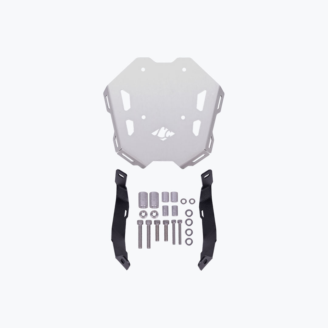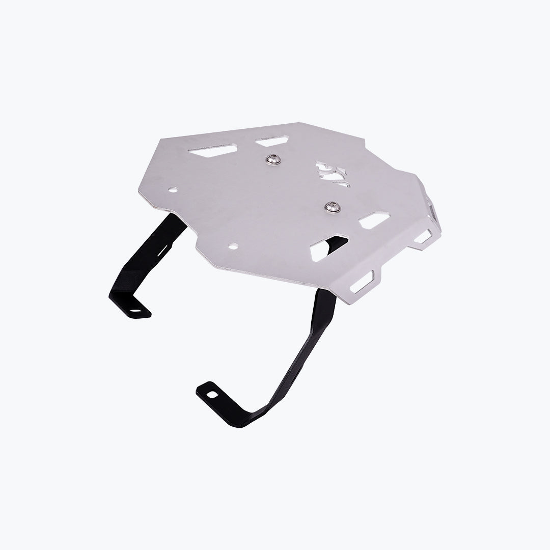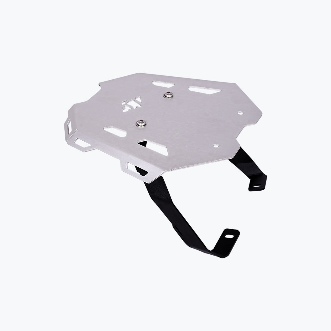 The Legundary Suzuki V Strom 800DE Haulier Rear Carrier Silver available at Bandidos pitstop is a durable and practical accessory designed to enhance your motorcycle's touring capabilities. Constructed from high-quality mild steel and finished with a silver powder coating, it offers both strength and resistance to corrosion. This rear carrier provides a stable platform for mounting top boxes or additional luggage, ensuring your gear is securely fastened during rides. Its design focuses on weight-bearing and load balancing, ensuring that the added luggage does not compromise the bike's stability or performance. The product comes with all necessary mounting hardware, facilitating a straightforward installation process. Whether you're embarking on a cross-country adventure or a weekend getaway, this rear carrier provides the reliability and durability needed to carry your gear with confidence.