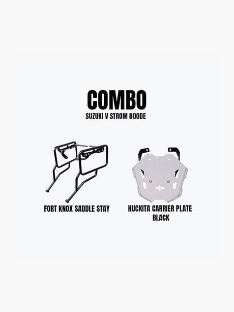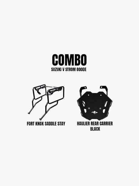 Suzuki V Strom 800DE Haulier Rear Carrier Black & Fortknox Saddle Stay Combo