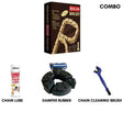 Contains - brass chain sprocket *1 , chain lube 200ml *1 , damper rubber * 1 set , chain cleaner * 1