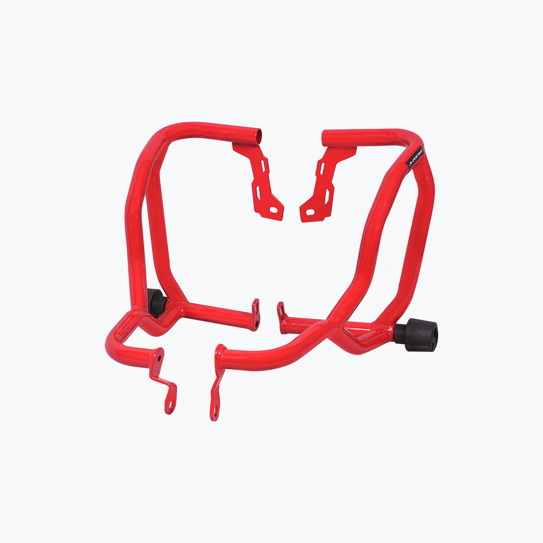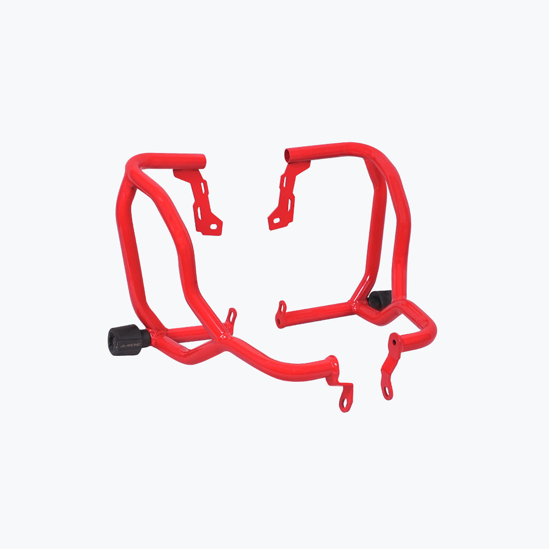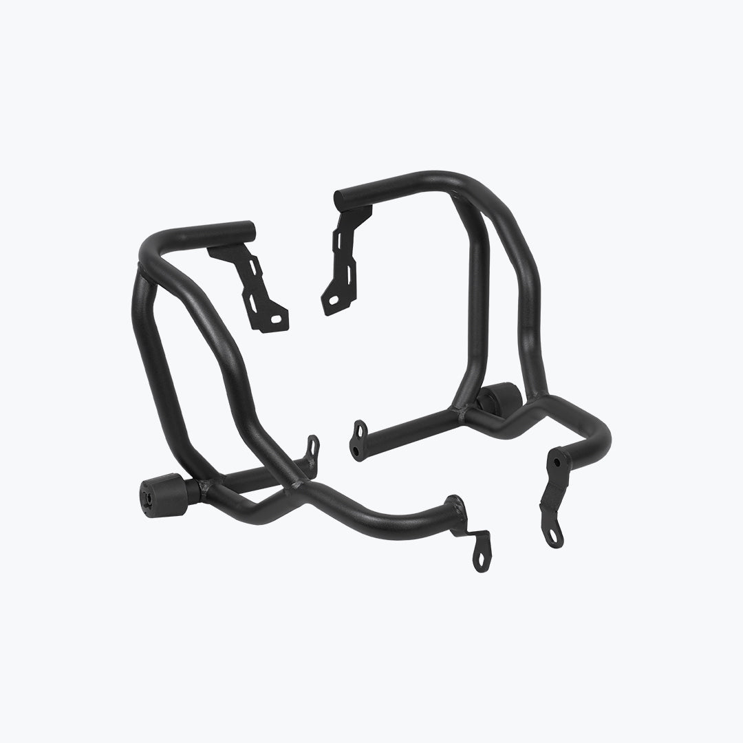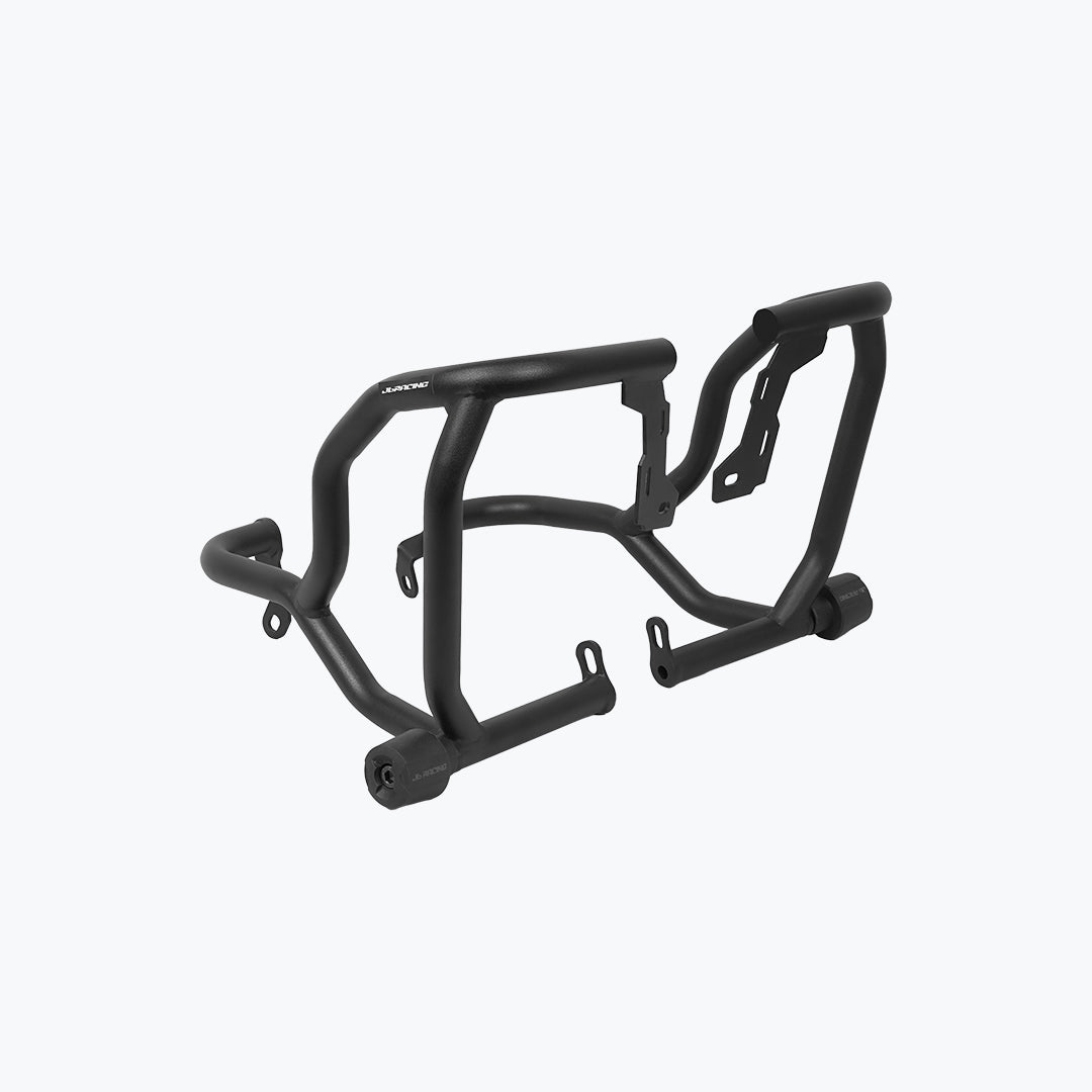 The JB Racing X Pulse 210 Defenso Crash Guard With Slider is a rugged protection upgrade designed for serious adventure and urban use alike. Made from heavy-gauge mild-steel tubing with a corrosion-resistant matte-black powder-coat finish, this guard mounts securely using your bike’s existing frame points no welding or cutting required. Dual slider pucks are built into the lower bars to absorb impact and protect the engine cases, radiator, and tank in the event of a fall or tip-over. The slim but sturdy profile maintains ground clearance and doesn’t interfere with foot-peg travel or bodywork styling. With integrated tie-points for optional fog lights or camera mounts, this guard combines smart usability with reinforced safety making it an excellent addition for riders who frequently navigate rough roads, trails or demanding conditions.