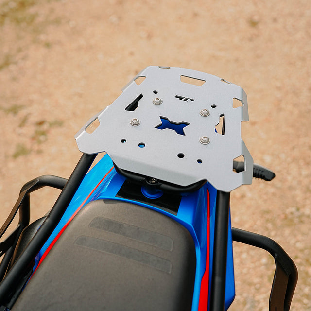 The JB Racing X Pulse 210 Kargo Luggage Carrier Black And Silver from Bandidos pitstop offers a robust luggage‐carrying solution tailor-made for the Hero Xpulse 210. Crafted from mild steel and finished in a sleek black powder-coating, this carrier plate is built to withstand demanding use while maintaining a clean, integrated look on your bike. it’s designed for riders who need to mount top-boxes or duffel bags without drastic modifications to the standard rear rack. By installing this accessory, you significantly boost the luggage carrying capability of your Xpulse 210, making it a smart upgrade for touring enthusiasts or everyday commuters who need extra storage space.