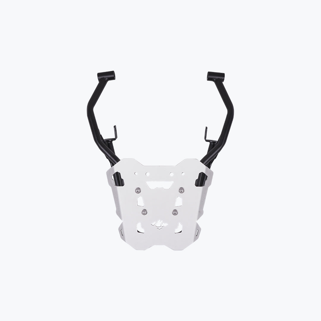 The Legundary Hero Xpulse 210 Gopher Luggage Carrier Black and Silver available at Bandidos pitstop is designed to enhance your Xpulse 210 touring capabilities by providing a sturdy platform for carrying luggage. Crafted from a combination of mild steel and aluminium, this carrier offers a balance of strength and lightweight construction, ensuring durability without compromising the X pulse 210 performance. The black and silver finish adds a sleek aesthetic that complements the Xpulse210 design. Its precision-engineered fitment ensures easy installation, allowing riders to securely mount various types of luggage including top boxes and duffel bags making it an ideal accessory for long-distance travel and daily commuting.