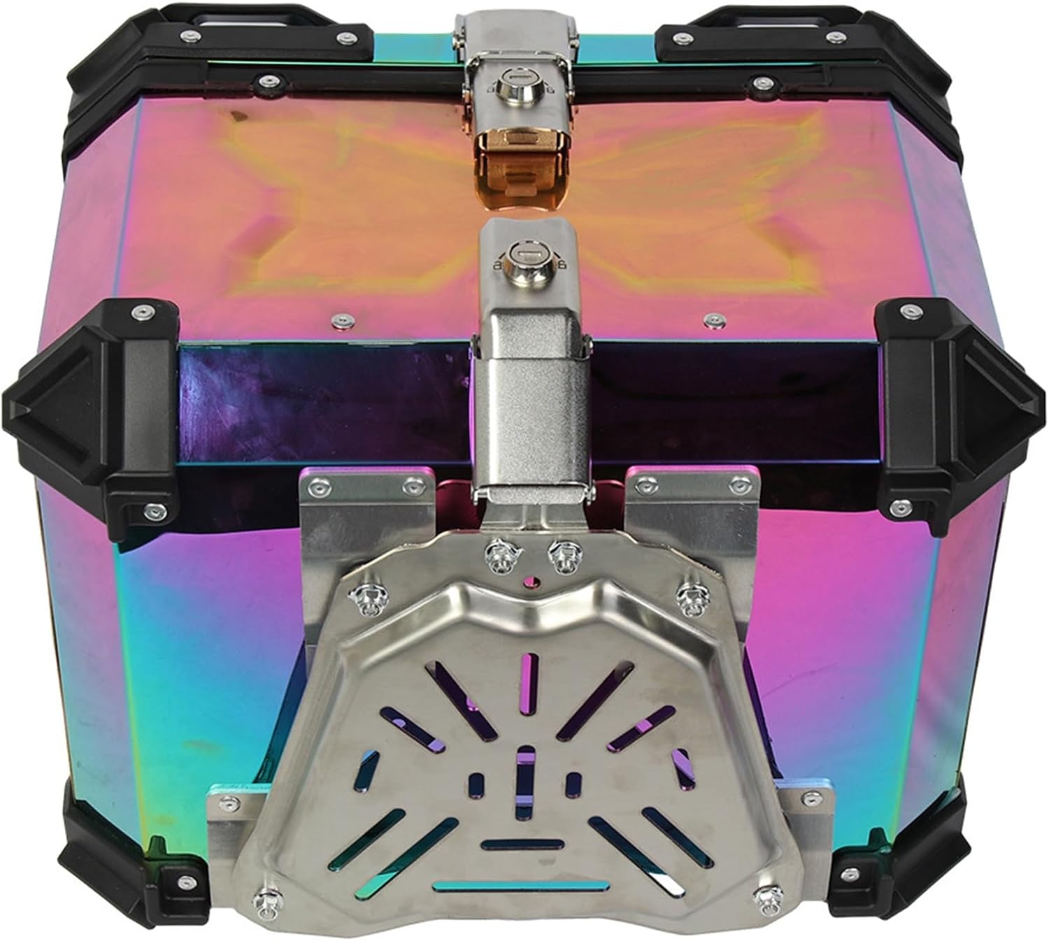 - High-quality material: The motorcycle top box is made of 1.5 mm/0.06 inch aluminum alloy plate aluminum box body + aluminum alloy material handle + technopolymer parts are used to reinforce the corners the structure is strong and it can adapt to any bad weather.