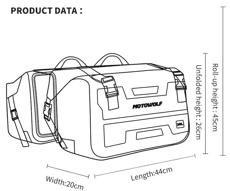 - 30L Large Capacity: Providing ample space for storing various items, such as clothing, helmets, and other riding essentials. Allows you to pack everything you need for your riding adventures