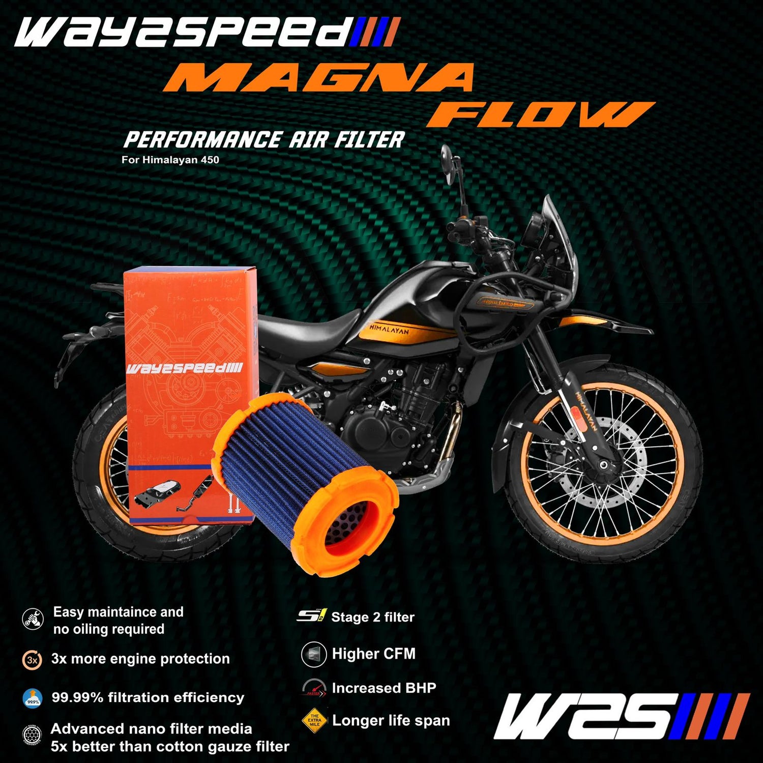 Way2Speed performance air filter for RE himalayan 450 / guerrilla 450 - MAGNA FLOW